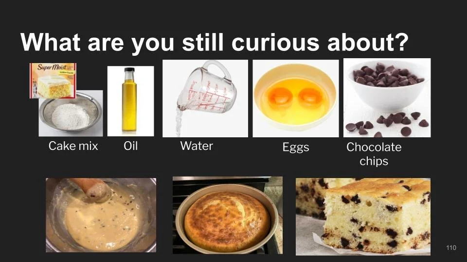 As second graders move from investigating how materials (ice, butter, chocolate chips, an egg) change when heated to explaining how a cake batter changes into a cake, they have to think about how each finding applies to the phenomenon and put them together in an explanation.